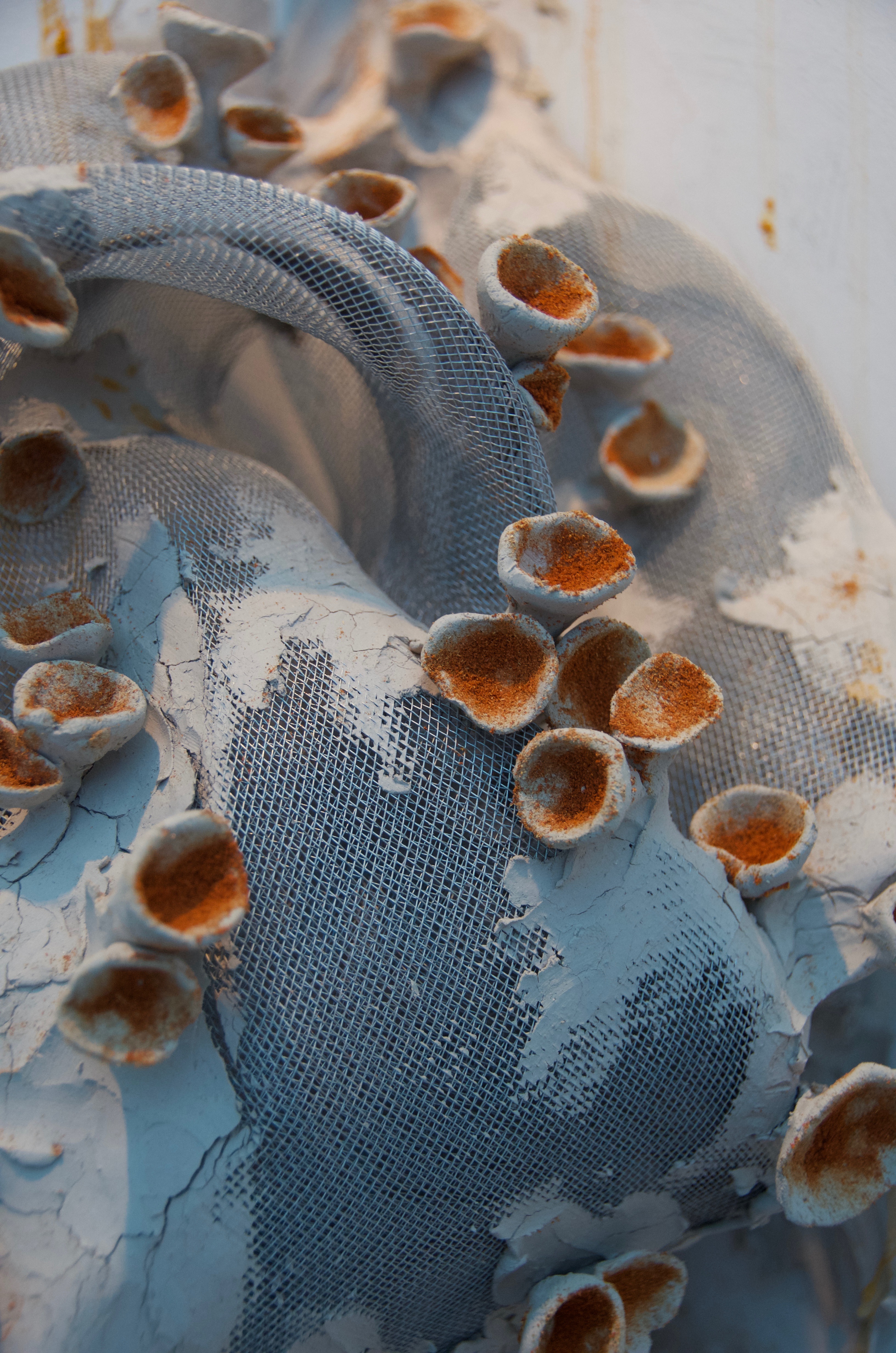 Unfired clay, turmeric, paprika, wire mesh, 2018.